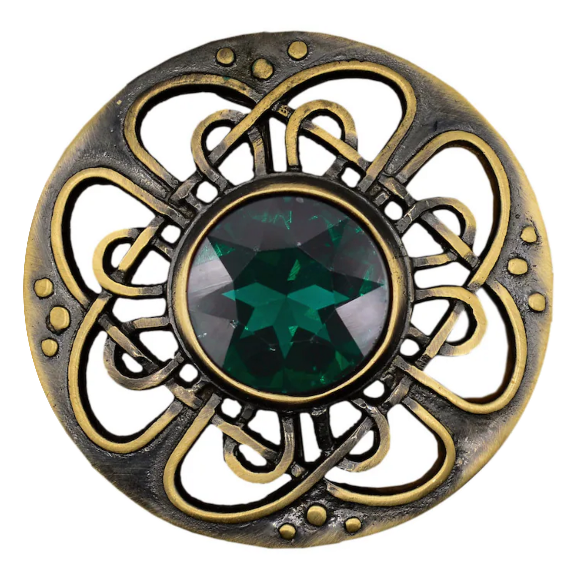 Traditional Celtic Design in Pewter – Expertly crafted with a classic Celtic Fly Plaid design, featuring intricate knotwork, an elegant antique brass finish, and gemstone embellishment.