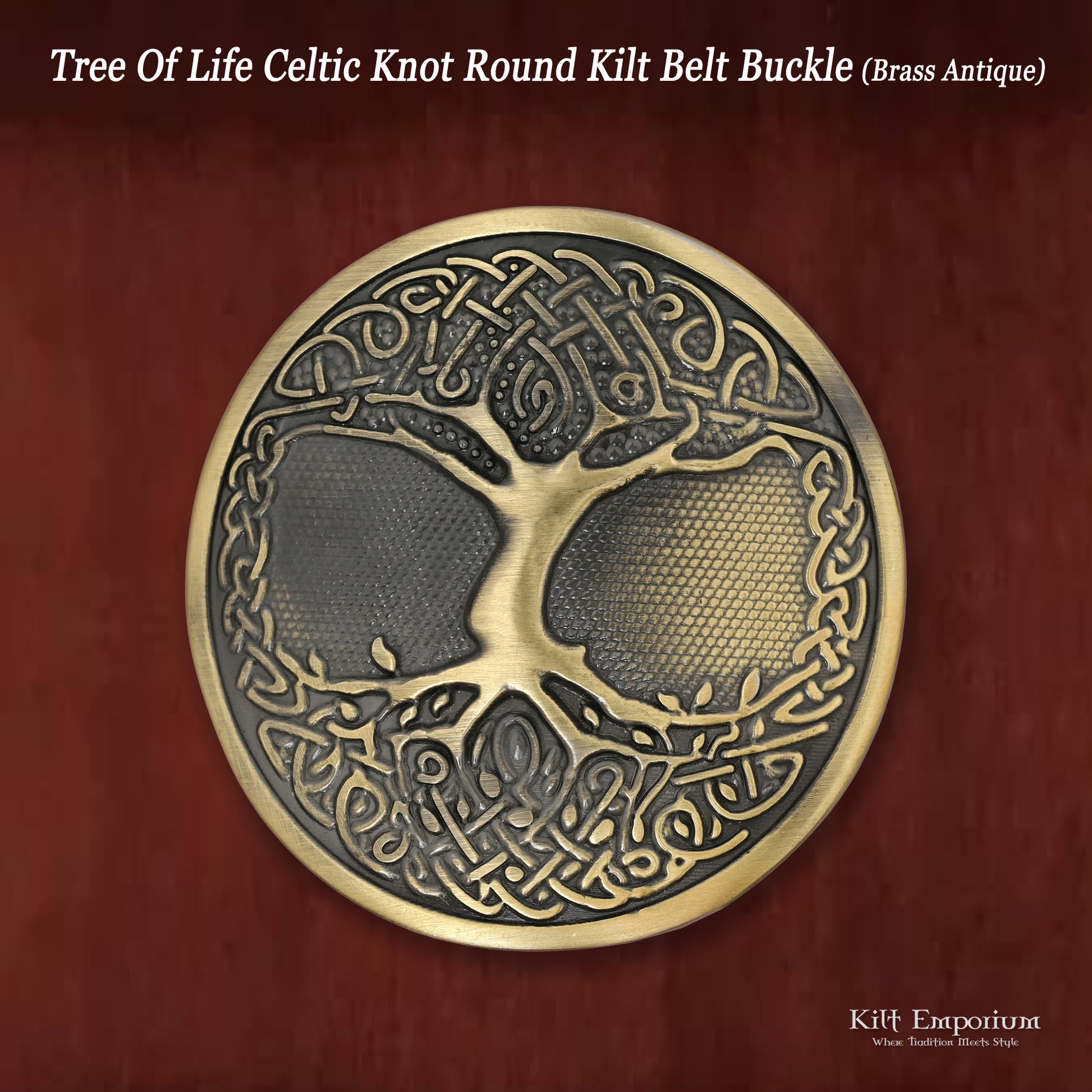 Kilt Emporium Tree of Life Celtic Kilt Belt Buckle - Round Brass Design