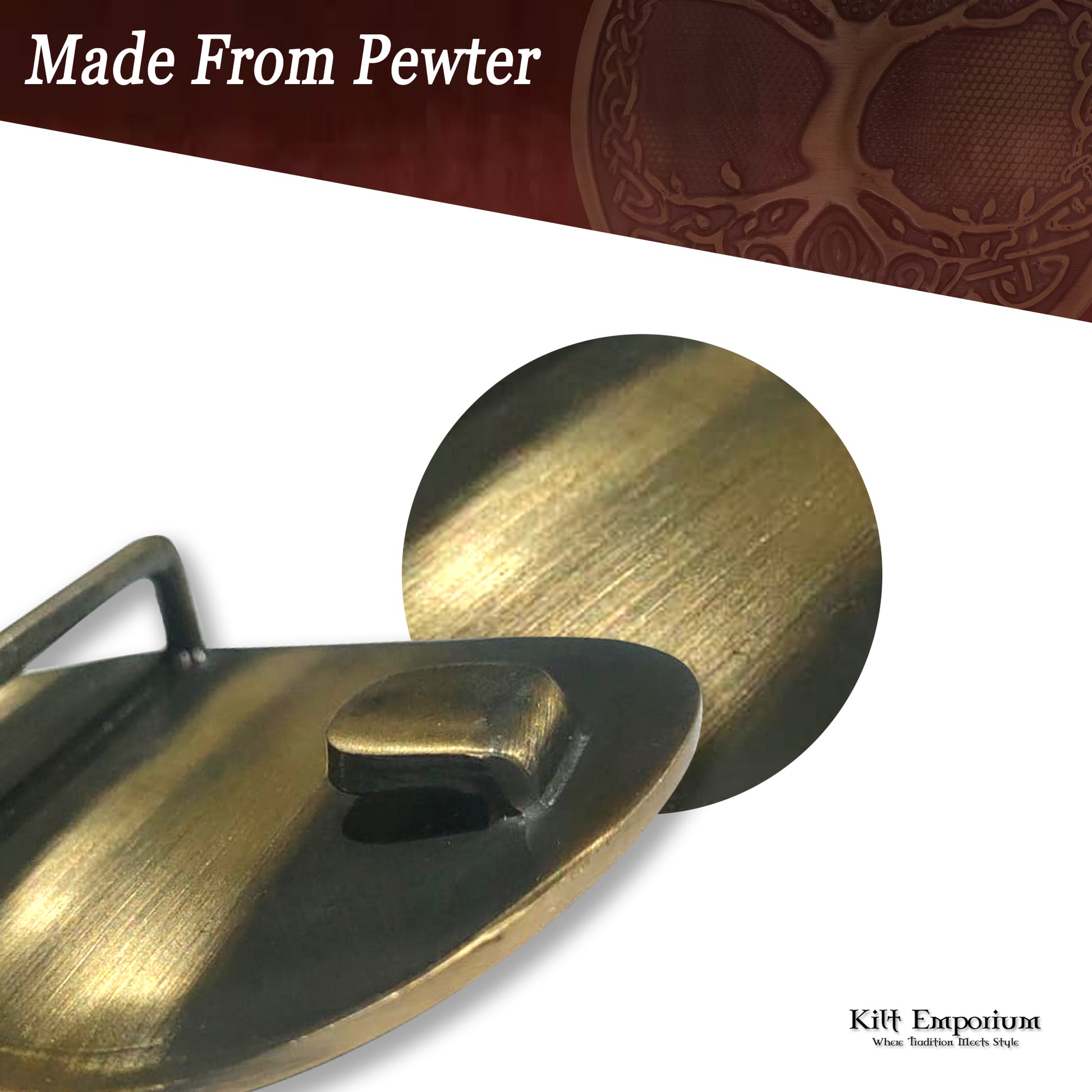 Discover the beauty and symbolism of the Tree of Life with our brass kilt buckle. Made with premium materials, including solid brass, this buckle's durability and resistance to tarnishing ensures it will be a cherished accessory for years to come. The unique round shape adds a touch of distinction to any kilt ensemble, while its universal fit guarantees a perfect fit for any standard kilt belt. Perfect for both casual and formal occasions, this buckle brings a touch of class and tradition to any outfit.